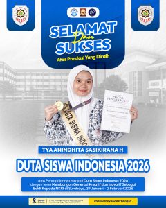 Selamat kepada Ayunda Adhzani Kurniawan atas pencapaiannya menjadi Duta Siswa Indonesia 2026, dengan tema Membangun Generasi Kreatif dan Inovatif Sebagai Bakti Kepada NKRI di Surabaya,